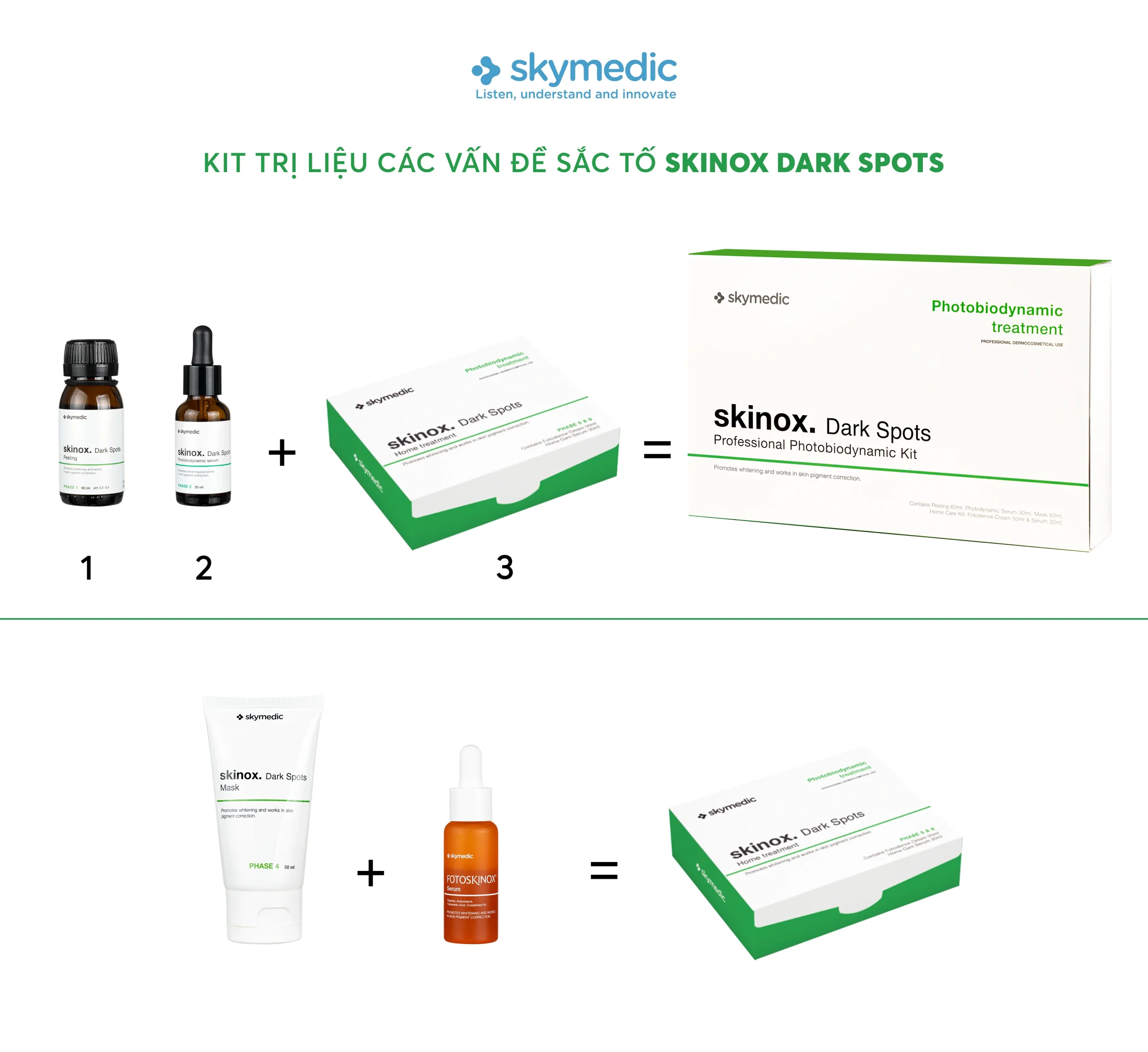 Bao gồm: Peeling độ pH 2,3 – 3,3 60ml, Photobiodynamic Serum – 30ml, Dark Spots Mask, Fotoskinox Serum 50ml, Fotoskinox SPF 50+ 50ml.